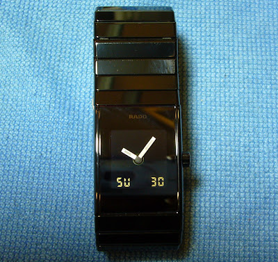 不過陶瓷缺點是不耐撞擊,像從高處掉落或碰撞硬物可能會斷裂,更換不但需送原廠公司而且所費不貲喔,尤其是錶殼接連的二片陶瓷錶帶是沒有備份的,上次被我家貓咪碰落結果錶冠破裂就花了1,200元更換;另外最好選購一体成型的錶款,因為市面上也有其他小廠牌仿照推出陶瓷錶,除了材質色澤與耐磨性不若Rado外,礙於技術都是以不锈鋼連接陶瓷片做成錶帶,但用久不锈鋼就刮痕明顯,而在台灣少見的多功能系列,小弟在配載多年後心得是,因是藉由旋轉錶冠來顯示不同功能常因配載時錶冠和手腕自然接觸而變動,例如我習慣顯示星期和日期,但每次伸手看時都是在其它功能顯示上,總是得再次重轉,另外因為少有,還遇到換電池後鐘錶店師傅不會調校時間呢,所以說明書一定要保存下來。